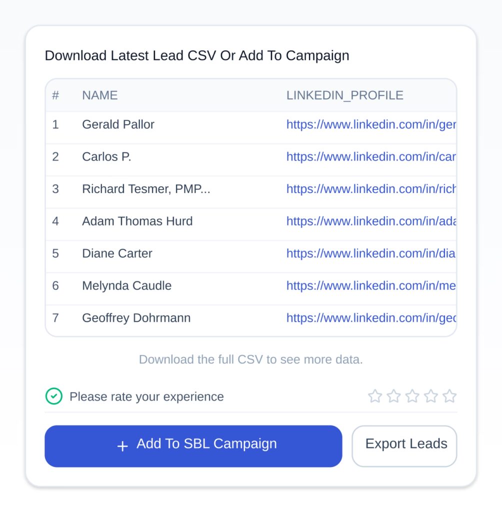 Our "Leads by SBL" tool pulls from live LinkedIn data that updates in real-time.