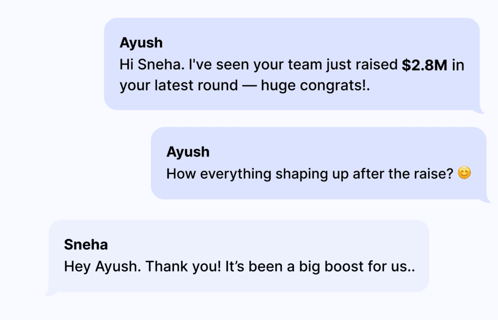 - Sentiment Analysis "Founder shows interest in AI-driven outreach" (positive), "Budget concerns raised" (friction point)