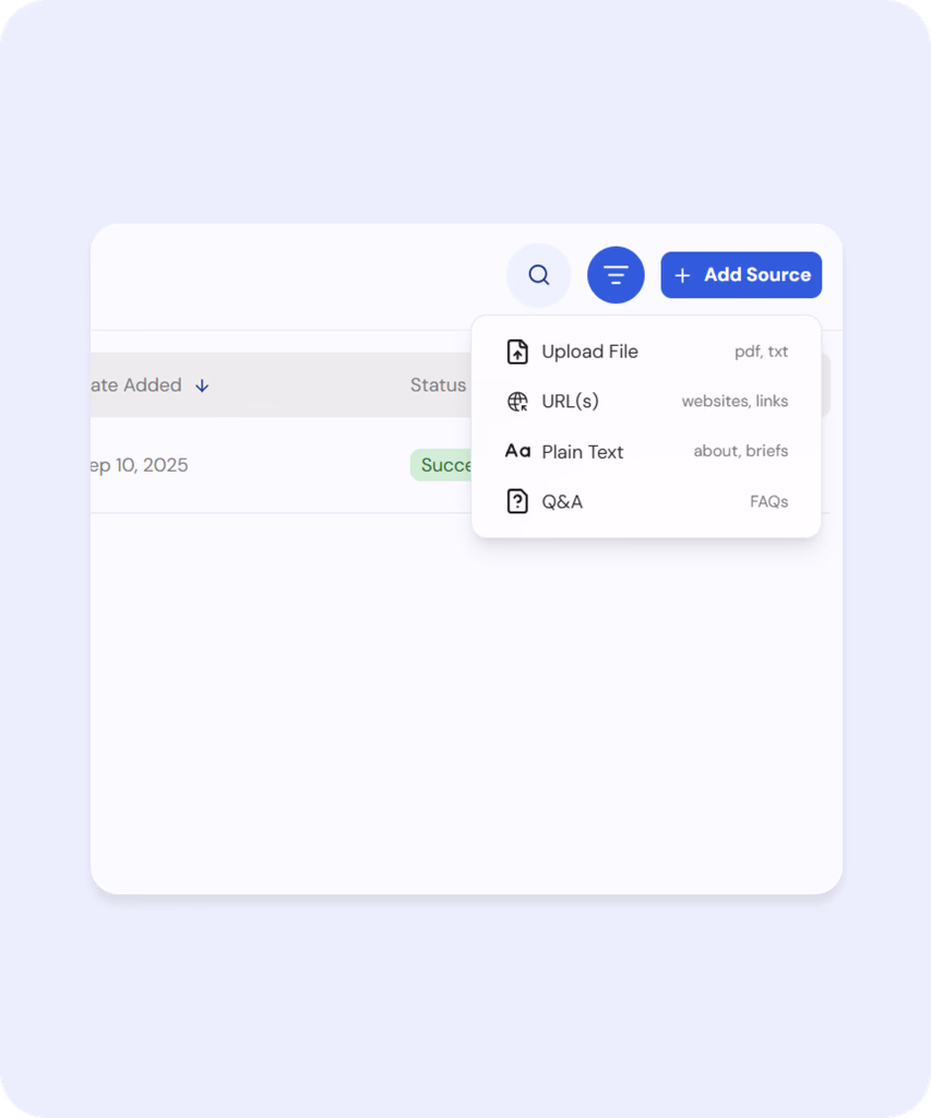 Upload your content once — let AI answer every prospect with on-brand accuracy.