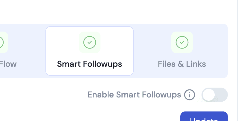 To get started, go to your campaign, click on the Smart Followups tab, toggle it on,