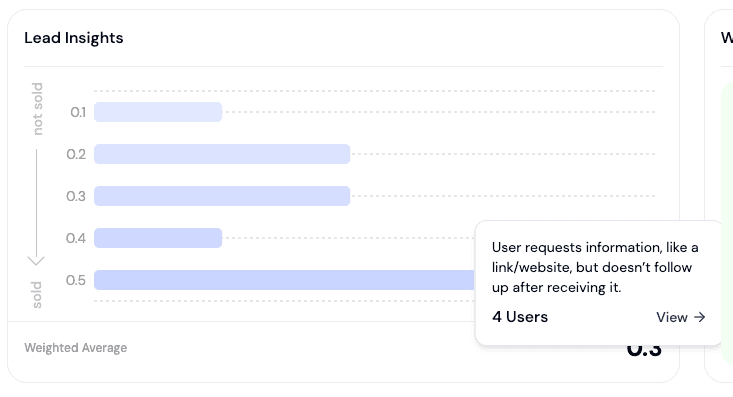 5. You get a full analytics dashboard showing sentiment, conversion rate, hot leads, and insights you can use to improve.
