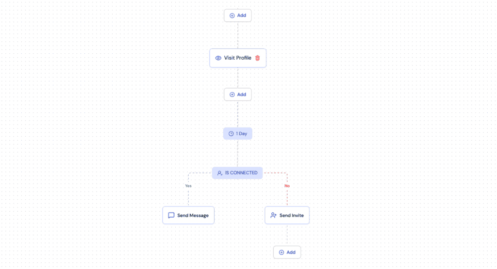 This sequence also handles whether someone is already connected. If they are, the outreach message is sent immediately. If they are not, the connection invite goes out first, and the message is sent once they accept.