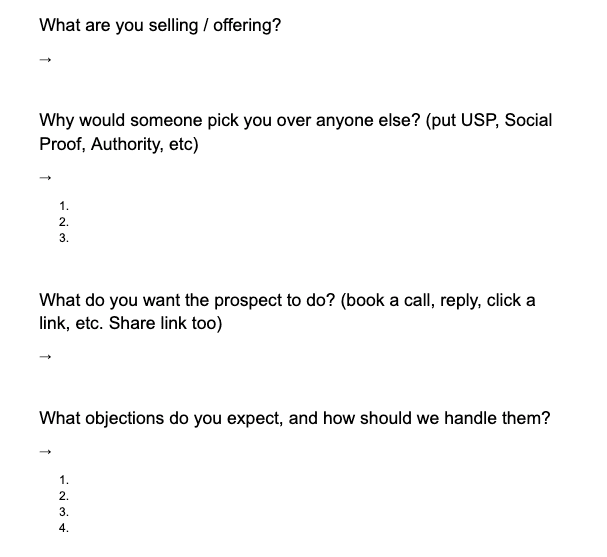 To make this easy, Sbl.so provides a Scratchpad — a Google Doc template with pre-built questions. Click on it, make a copy, fill in the answers, then paste the whole thing back into the prompt field. The template covers: