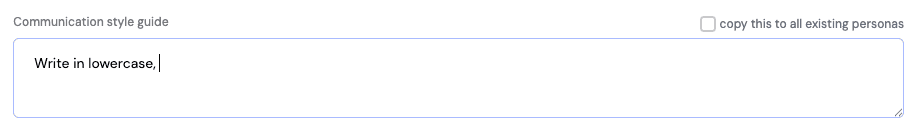 To train your persona to adapt your exact writing style. You have the flexibility to add your communication style. Under your “Persona” Tab, when you click your persona name, in the form, you can find an option of “Communication style guide”
