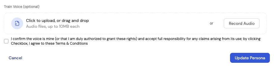 After training, click the Preview button to hear how it sounds. You can tweak settings and re-record until it is right. Click Update Persona to save.