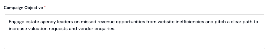 A modal appears asking you to describe your campaign objective. This is the single most important input in your entire setup. The more specific and detailed your description, the better the campaign Sbl.so generates for you.